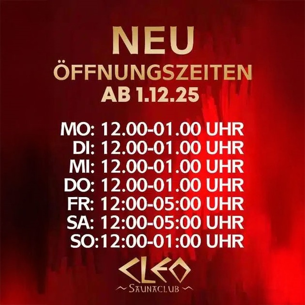 Seit dem 01. Dezember hat der Club neue Öffnungszeiten. Im Einzelnen sind dies: