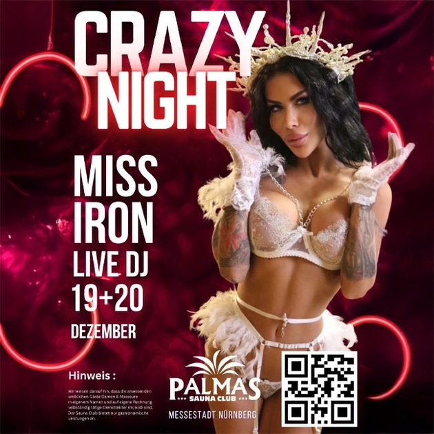 Dazu zählt zweifelsohne auch der Aufenthalt im attraktiven Wellnessbereich der Location, der nicht nur die körperliche, sondern auch die geistige Entspannung und Regeneration nachhaltig fördert. Wellness & Party hier gibt es von allem mehr als genug. Ein unvergessliches Erleben im Überfluss, von dem man(n) einfach nicht genug bekommen kann! Wichtiger Hinweis: Der Sauna Club Palmas bietet nur gastronomische Leistungen an. Der Zutritt ist nur volljährigen Gästen gestattet. Wir weisen darauf hin, dass die anwesenden weiblichen Gäste (Damen & Masseure) in eigenem Namen und auf eigene Rechnung selbständig tätige Dienstleister (m/w/d) sind. Sie sind nicht Subunternehmer oder Angestellte des Sauna Clubs Palmas. Sämtliche angebotenen und kostenpflichtigen Dienstleistungen werden als Geschäftsbeziehung ausschließlich zwischen diesen Unternehmerinnen und den männlichen Gästen eingegangen. Der Sauna Club Palmas hat keinen Einfluss auf die Ausgestaltung und die Abwicklung. |